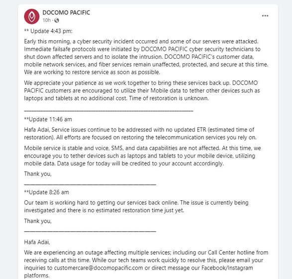 DOCOMO Pacific details cyber security attack; customer data unaffected, but system restoration ongoing