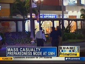 Guam - At 10:20 Tuesday night, the Guam Memorial Hospital's emergency room was notified to expect mass casualties that immediately sent the hospital into preparedness mode. "It involves assessing our staff, moving patients out of the ER and moving patients from the various floors in preparation to receive and preparing supplies and calling staff at all levels of the hospital," explained GMH administrator Joseph Verga.