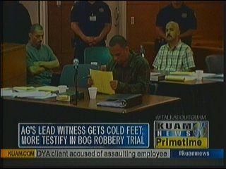 Also taking the stand today was Guam Police Department Detective Keane Pangelinan. Pangelinan stated today that the only pieces of evidence retrieved in connection to the robbery were a single unexpended bullet found outside the bank as well as a license plate retrieved in the nearby jungle area where the robbers supposedly met up after the crime. Defense attorneys noted that no fingerprints were found on the bullet and the license plate didn't match that of any of the suspects.