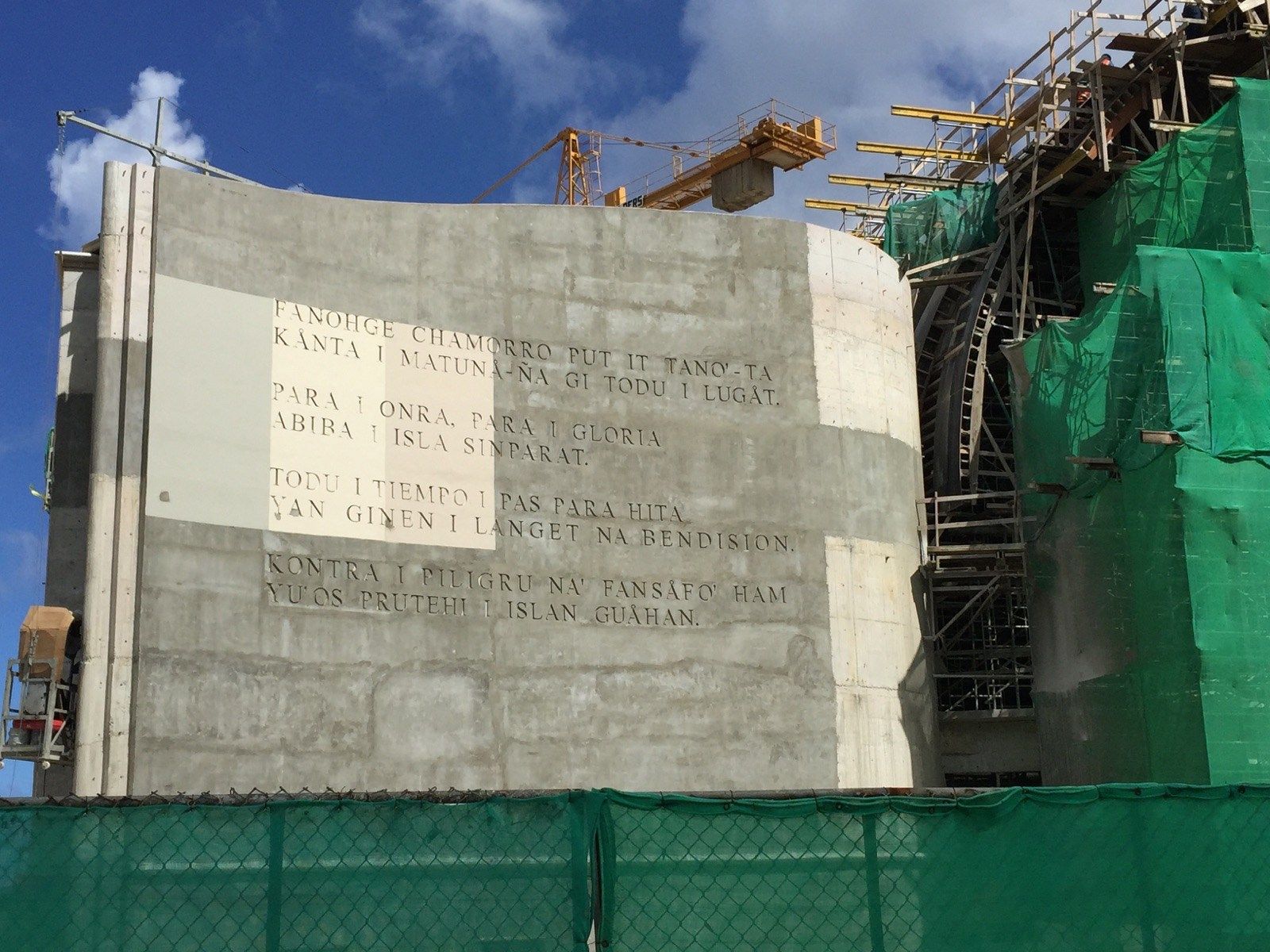 If you've driven by the construction site for the new Guam Museum, look closely at the words on the wall of the Guam Hymn, because you will find a rather glaring mistake.
