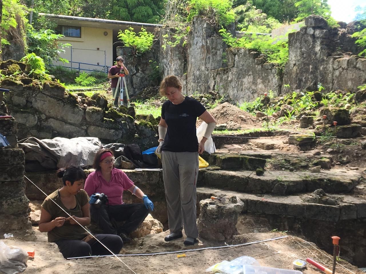 Aguon is with the Humatak Community Foundation, part of a larger project by the Guam Preservation Trust, Humatak Mayor's Office, and several international universities. Beneath a canopy of trees, they're digging through Guam's first Spanish church, the San Dionisio Church, built in 1681.