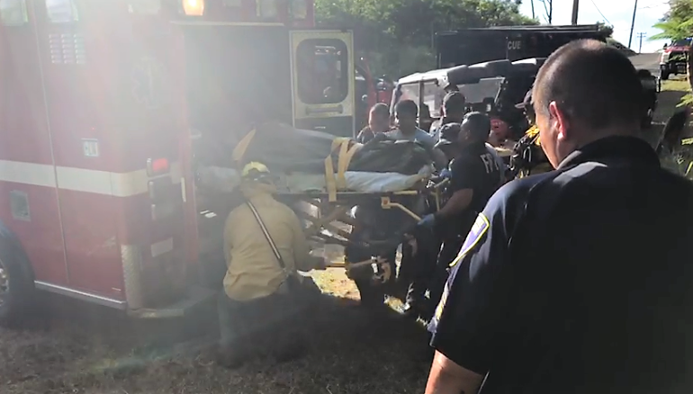 The body was then secured on a stretcher, placed on the back of a buggy and driven through the steep jungle trail to a waiting ambulance just after 4 p.m.