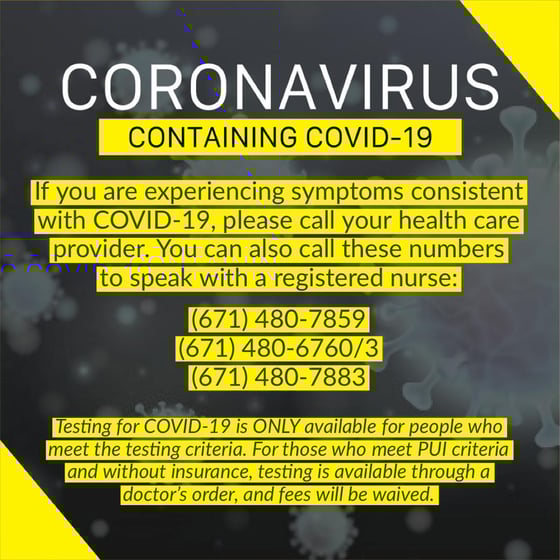 You can also call these numbers to speak with a registered nurse: 480-7859; 480-6760/3; 480-7883. According to the JIC testing for COVID-19 is only available for people who meet the testing criteria. For those who meet PUI criteria and without insurance, testing is available through a doctor's order, and fees will be waived.#