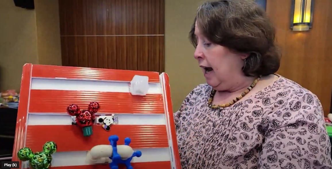 "Or using recycled election signs and making cellphone holders, making abacuses for children who are blind. All the things you can do very very quickly on the fly. Sensory boards, fidget items, busy boards. Here’s another example of a book holder, mounting solution and making things that are portable, collapsible, bendable and again, out of just ordinary items that people often discard," she continued.