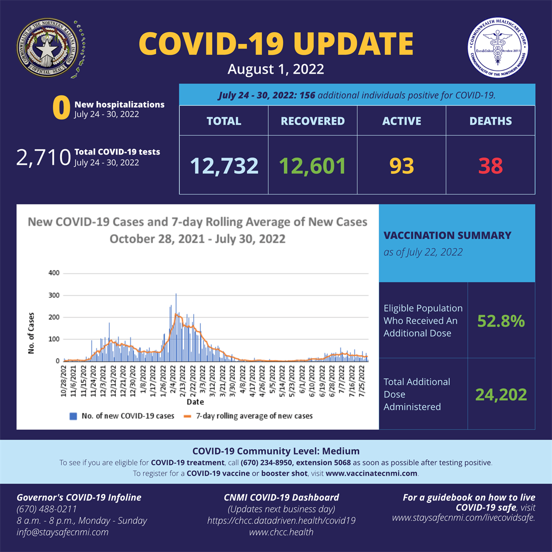 Muldoon added, "We currently do not have any treatment for monkeypox. We do have the opportunity that is forthcoming for vaccines. Currently the CNMI does not have any vaccines available on island but the CDC is giving out the vaccines based on the need of the jurisdiction and because the CNMI does not have any current or suspected cases we do not have any of the vaccine allocated to us at this time."