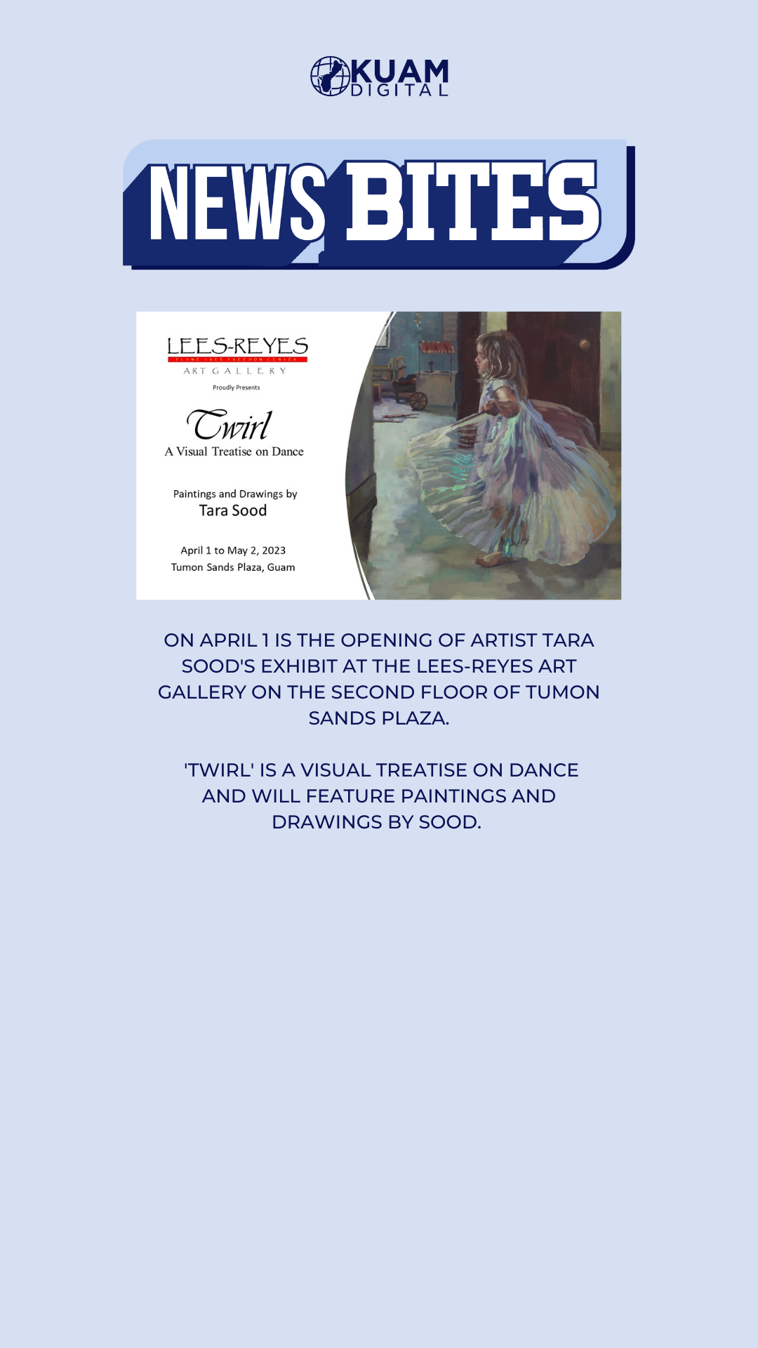 ON APRIL 1 IS THE OPENING OF ARTIST TARA SOOD'S EXHIBIT AT THE LEES-REYES ART GALLERY ON THE SECOND FLOOR OF TUMON SANDS PLAZA. 'TWIRL' IS A VISUAL TREATISE ON DANCE AND WILL FEATURE PAINTINGS AND DRAWINGS BY SOOD.