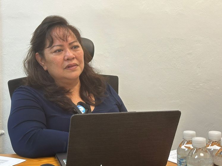 Saipan Senator Celina Babauta, a democrat, held a press conference after Senate President Edith Deleon Guerrero, who recently left the party, removed Babauta as Chair of the Judiciary, Government, and the Law Committee.