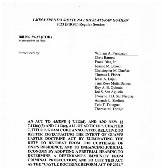 He's calling for public education on what the Castle Doctrine Reform Act of 2024 fully entails.