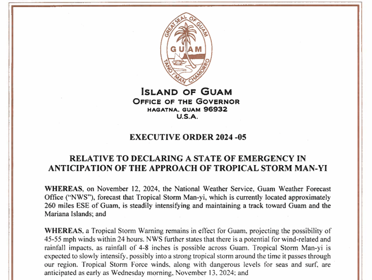 Acting Governor Josh Tenorio has signed Executive Order No. 2024-05 late Tuesday afternoon.