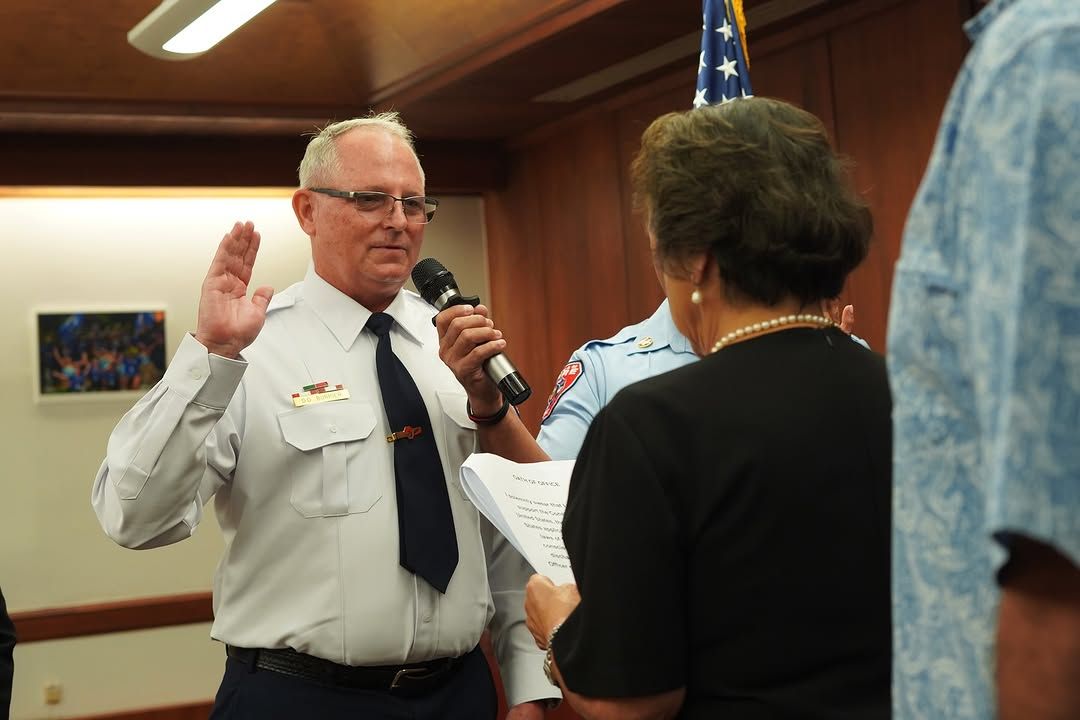 On Wednesday morning in Adelup, in front of family, friends, and fellow brothers and sisters from the Guam Fire Department, Daren Burrier was sworn in as Fire Chief.