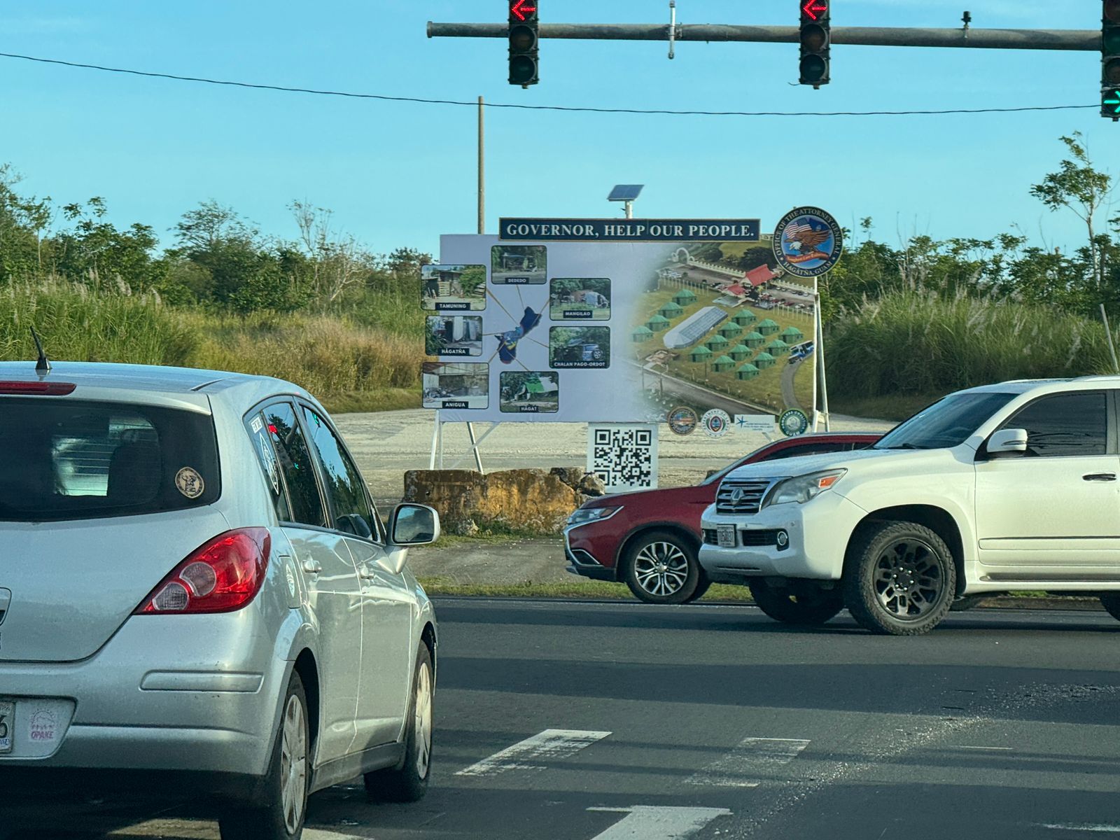 The billboards, which depict a “tent city” on the lawn of the Governor’s Complex, have drawn sharp criticism from Adelup, calling it a “fear-mongering display” and a “waste of taxpayer dollars” that could have been used for real solutions.