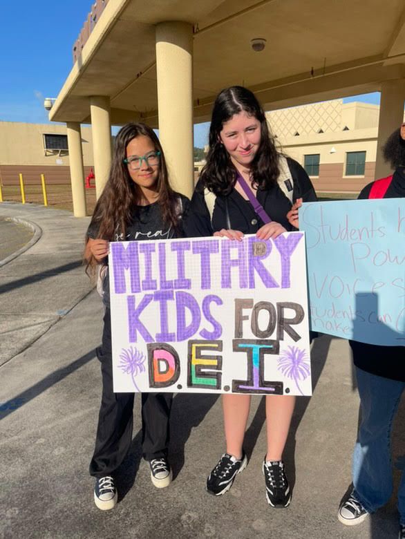 11 students from Guam High recently joined with other DoDEA programs worldwide, staging a walkout from class and holding signs in favor of diversity, equity and inclusion (DEI) policy changes. The students supported their peers in other federal schools, p