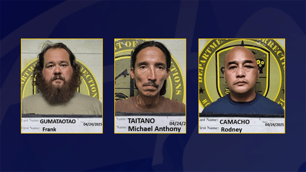 Court documents identify those involved as 45-year-old Michael Anthony Fejeran Tatiano, 39-year-old Frank J. Gumataotao and 48-year-old Rodney Crisostomo Camacho.