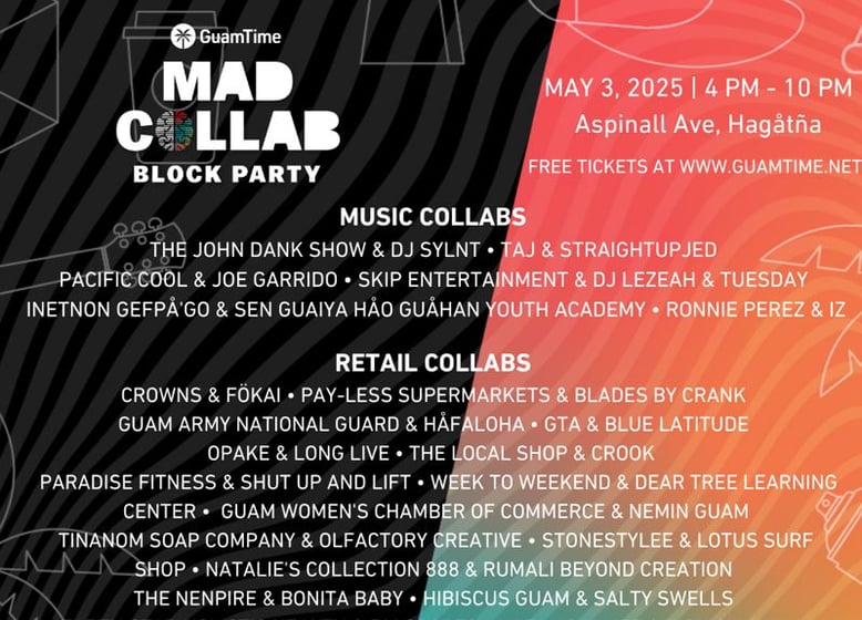 GuamTime is turning 5, and they’re celebrating with a high-energy, community-focused block party in the heart of Hagåtña. The Mad Collab Block Party promises music, food, and over 70 local businesses coming together in the spirit of creativity and collaboration.