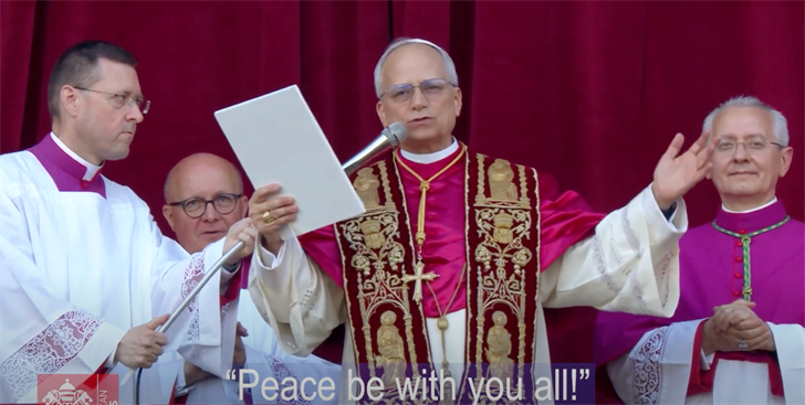 Greeting a crowded square at Saint Peter's Basilica, Pope Leo opened with, “La pace sia con tutti voi!”