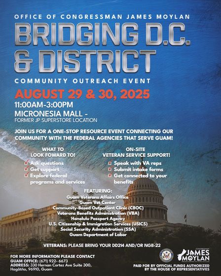Congressman James Moylan is inviting the community to a free two-day outreach event called “Bridging D.C. & District.”