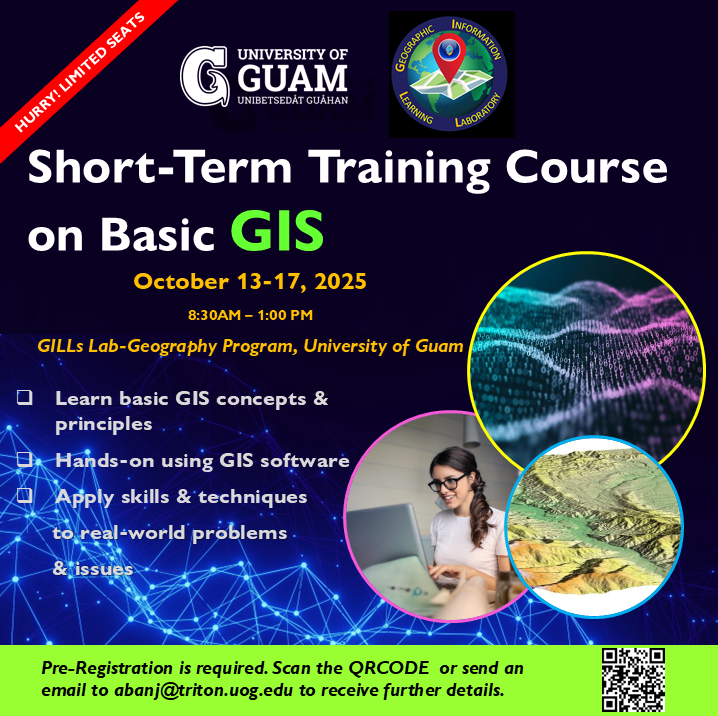 The University of Guam will host a short-term training course in basic Geographic Information Systems from Oct. 13 to 17, 2025, offering professionals and community members a hands-on introduction to this increasingly vital technology.