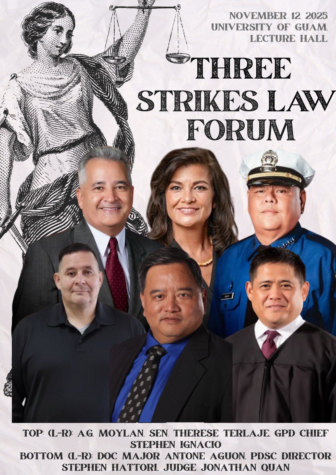 The “Three Strikes Law Forum” takes place this Wednesday, November 12, at the UOG Lecture Hall from 10am to 1pm. The event is open to the public and will also be livestreamed on the team’s Instagram profile.